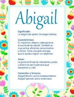 Este significado está cargado de dulzura y ternura, brindando una imagen de una niña amada y deseada por su padre. Abigail es un nombre que evoca gratitud y felicidad, ya que señala la alegría que trae consigo la presencia de esta niña en la vida de su padre.